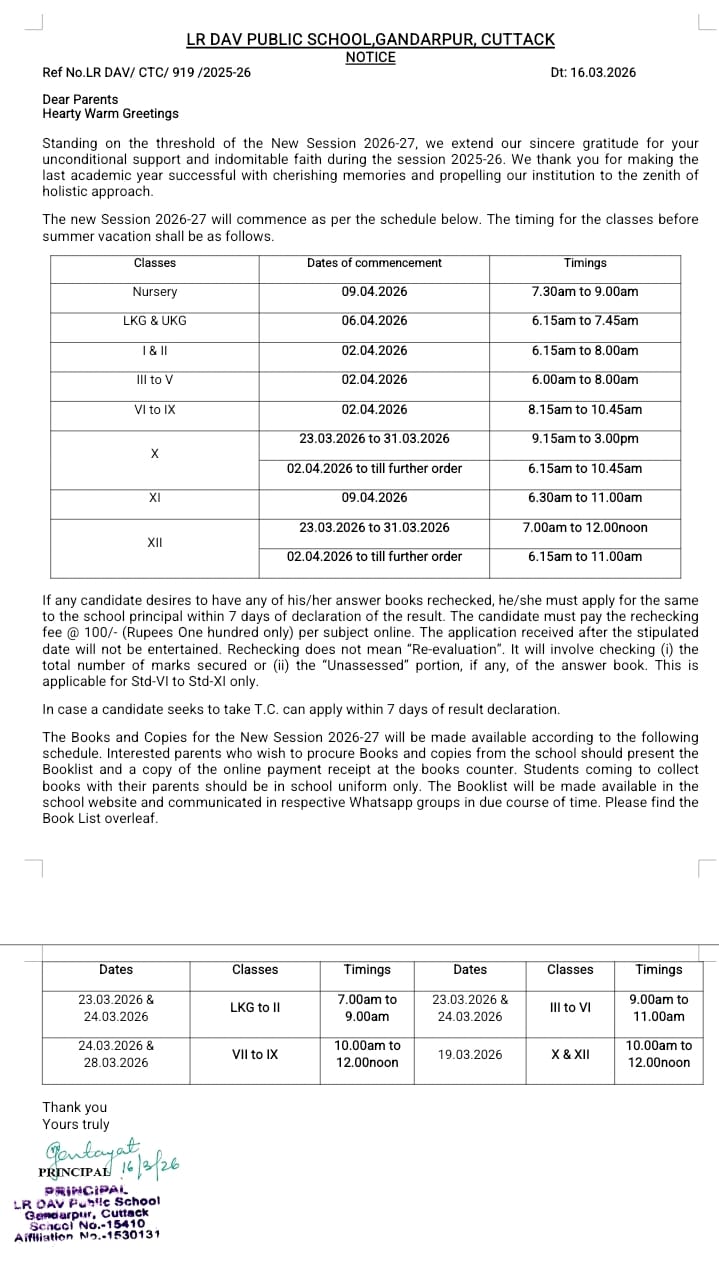Lajpat Rai DAV PUBLIC SCHOOL Gandarpur, P/O -College Square Cuttack, Odisha - 753003 Telefax No. - (0671) 2443545 E-Mail : [email protected]
